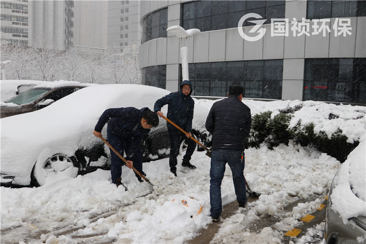 7點多鐘,國禎集團總裁常先米帶領(lǐng)集團職能部室、環(huán)保行政管理部、環(huán)保環(huán)境工程事業(yè)部干部職工開展大廈道路掃雪工作。大家踏著積雪,頂著雪花,揮舞著鐵鍬、掃帚,市外雖然天氣寒冷,現(xiàn)場卻熱火朝天。經(jīng)過大家一個多小時的緊張勞動,大廈停車場、連接道路上所有積雪被清掃一空,為廣大職工出行提供了便利。