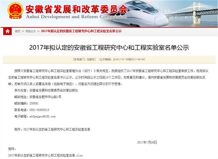 安徽省發(fā)展與改革委員會(huì)公示鏈接地址: