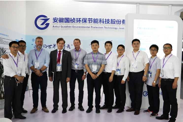 挪威駐華商務(wù)參贊索黎先生參觀國禎環(huán)保展廳并與工作人員合影