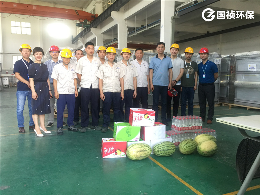 8月7日,國禎環(huán)??偨浝硎》濉⒈O(jiān)事會主席陳會武、經營副總監(jiān)趙玉香等一行來到膜科技、設備制造事業(yè)部生產車間,將防暑降溫用品一一送到一線員工手中,詳細詢問車間的防暑降溫措施,囑咐大家要做好安全教育、遵守安全規(guī)章,要將安全工作抓實抓細,希望大家要齊心協(xié)力做好防暑降溫工作,確保高溫季節(jié)安全生產穩(wěn)定。