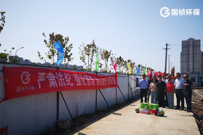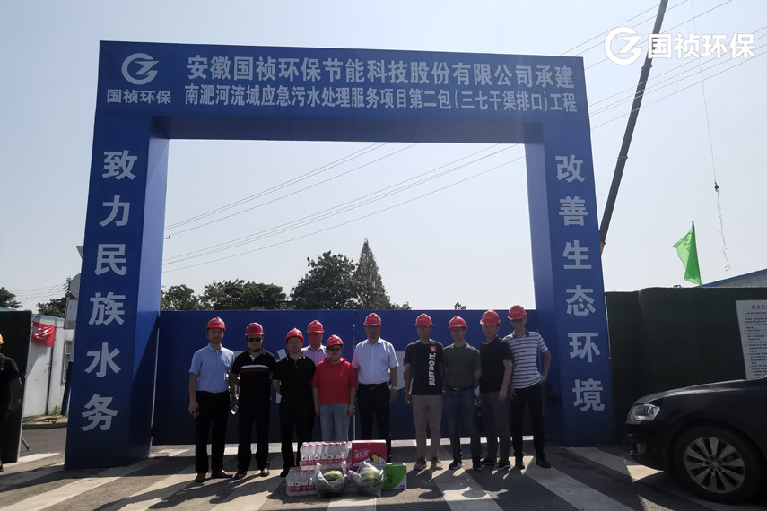 8月13日,國禎環(huán)保副總經理殷皓、王立余 、審計副總監(jiān)王海寧及建設管理中心主任方亮等一行來到南淝河流域應急污水處理服務項目施工現場,將消暑降溫用品送到一線員工手中,詳細詢問大家的工作和生活情況,對大家不畏高溫、忠于職守的工作態(tài)度表示敬意和感謝,并叮囑大家要合理安排施工現場的作息時間,注意防暑降溫、勞逸結合。同時鼓勵大家攻堅克難,為南淝河流域水質改善貢獻國禎智慧。