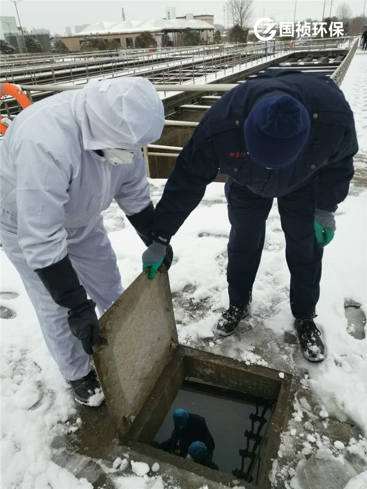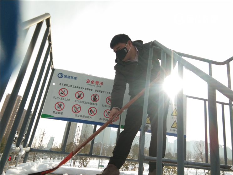 合肥南淝河徐河水質(zhì)凈化站員工在鏟雪