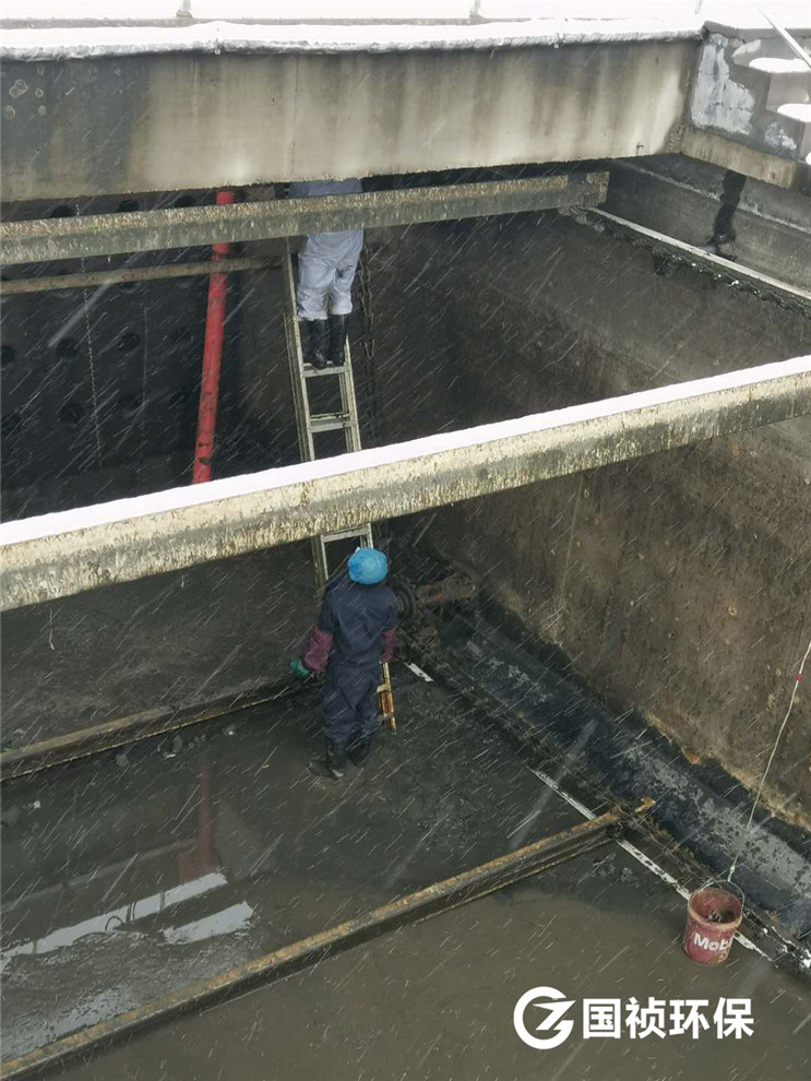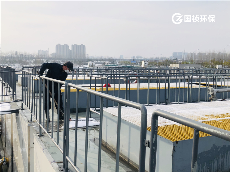 合肥南淝河三七水質(zhì)凈化站員工在鏟雪