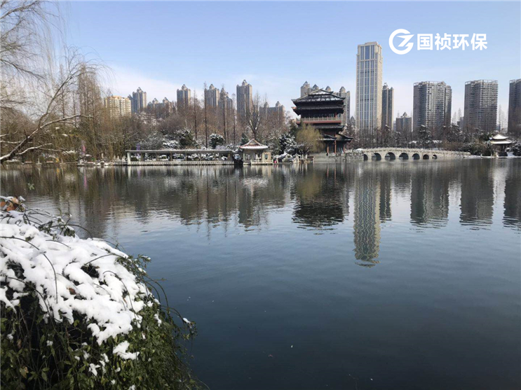 合肥市逍遙津公園水環(huán)境治理項(xiàng)目運(yùn)維人員雪后打撈落葉