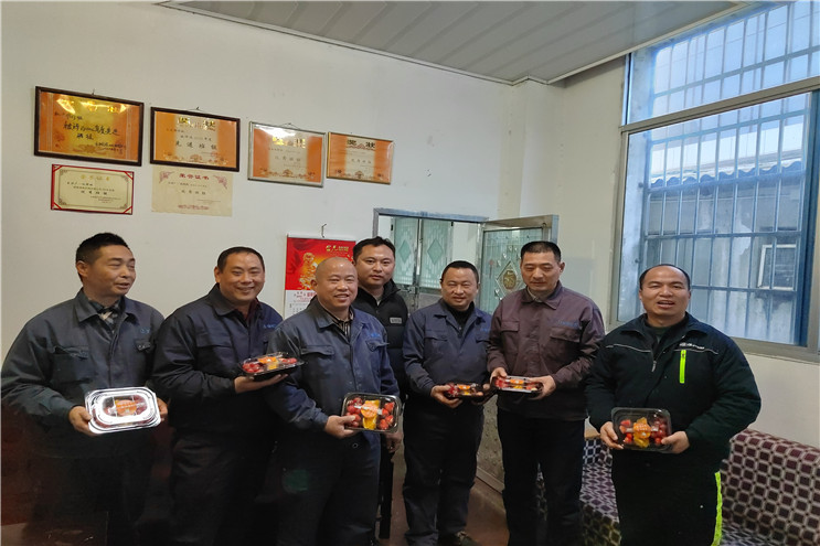 “新年好!給大家拜年啦!”伴隨著溫暖的話語,當日上午,公司領(lǐng)導(dǎo)班子成員帶著喜慶的笑容、熱情的問候走進本部各部門、基層各單位,深入車間、班組,向廣大干部職工拜年,為大家送去新春的祝福和節(jié)日的問候,并向一線員工送上寓意“‘橙’意開年‘莓’好將至 ”的蛋糕。