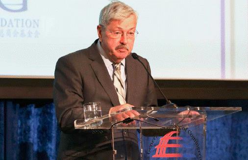 美國駐華大使Terry Branstad在招待會上發(fā)表講話